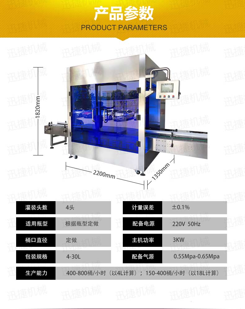 機(jī)油灌裝機(jī)適用于對(duì)4kg-25kg汽車用品類產(chǎn)品:潤(rùn)滑油、防凍液、車用尿素等液體灌裝。自動(dòng)完成計(jì)數(shù)進(jìn)瓶、計(jì)重量灌裝、輸送出瓶等一系列操作。