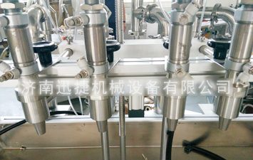 3、各個灌裝頭可在一定范圍內(nèi)任意調(diào)節(jié)間距和高度,可使用各種大小形狀的容器的灌裝。